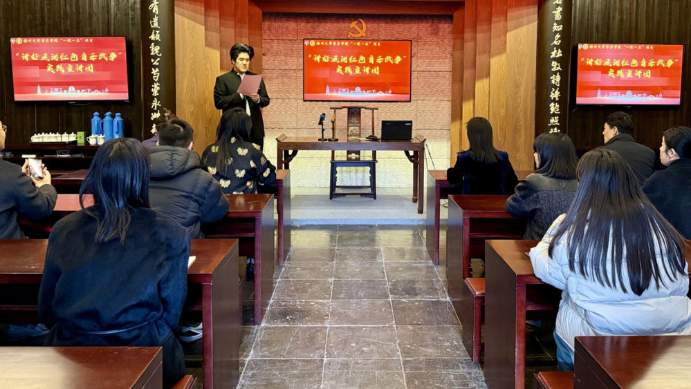 活動中,揚州大學音樂學院本科生黨支部的同學以《講好運河紅色音樂故事》為題開展思政課分享。圍繞運河文化中的紅色基因,結(jié)合音樂專業(yè)特色,通過經(jīng)典紅色歌曲賞析、運河紅色故事解讀、音樂文化傳承實踐分享等形式,生動展現(xiàn)了紅色音樂與運河文脈的深厚聯(lián)結(jié)。整場思政課內(nèi)容豐富、感染力強,實現(xiàn)了黨性教育與專業(yè)交流的有機融合。此次“音樂+黨建”的創(chuàng)新形式獲得了雙方一致認可,后續(xù)雙方將進一步探索其應用場景,計劃將該形式植入阮家祠堂家風研學活動中,讓研學參與者在紅色音樂的浸潤與家風文化的熏陶中,深化對黨性修養(yǎng)與文化傳承的理解,推動校企合作在研學領域持續(xù)走深走實。