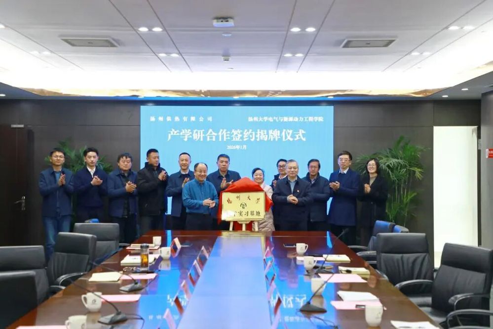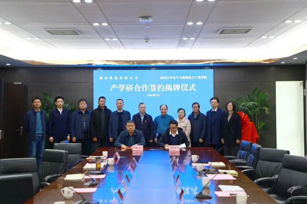 1月28日下午,供熱公司與揚州大學電氣與能源動力工程學院舉行產學研合作簽約揭牌儀式。揚州大學電氣與能源動力工程學院院長楊華、黨委副書記周敏、副院長李生權,城控集團副總經理、能源集團董事長孔德存,供熱公司主要負責人及相關人員出席儀式。